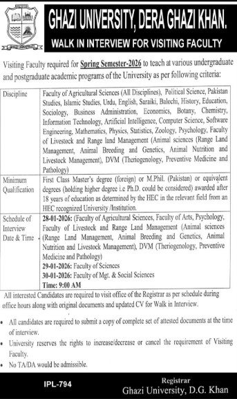 Vacancies Details of Ghazi University Jobs 2026 In DG Khan
